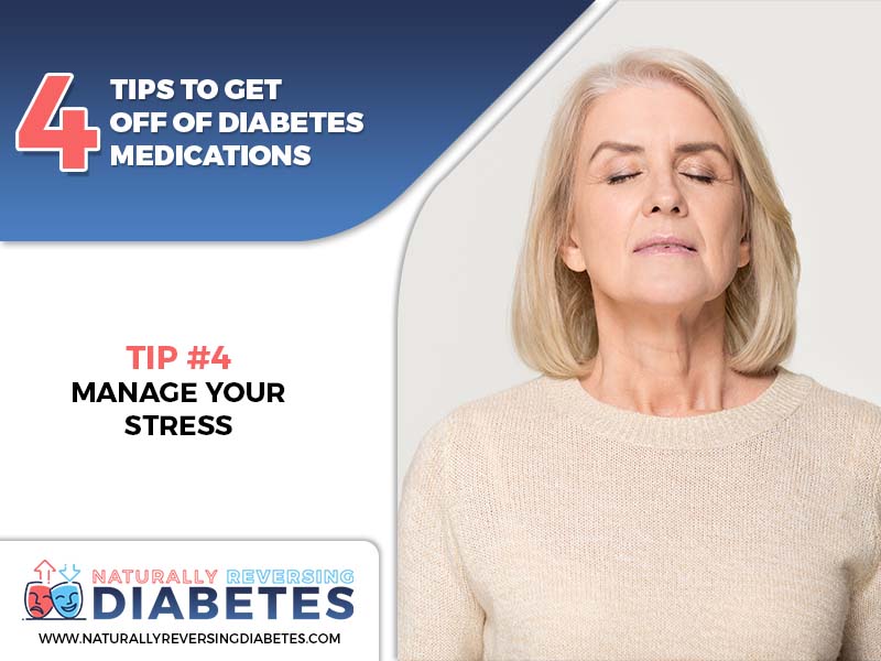 This step is to get stress under control. Besides nutrition and exercise, keeping the stress you have to deal with to a minimum is also one of the key factors to getting off of diabetes medication. There are two types of stress that can affect someone with diabetes. Those are mental and physical stress. When you're under stress, it can be harder to have the mindset that you want to control or reverse diabetes.