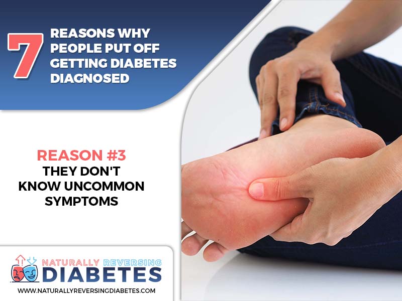 There are a few uncommon symptoms of diabetes. People may not know about these symptoms. Not realizing that what you're going through is a symptom of diabetes can make it hard for you to know that you should be diagnosed.